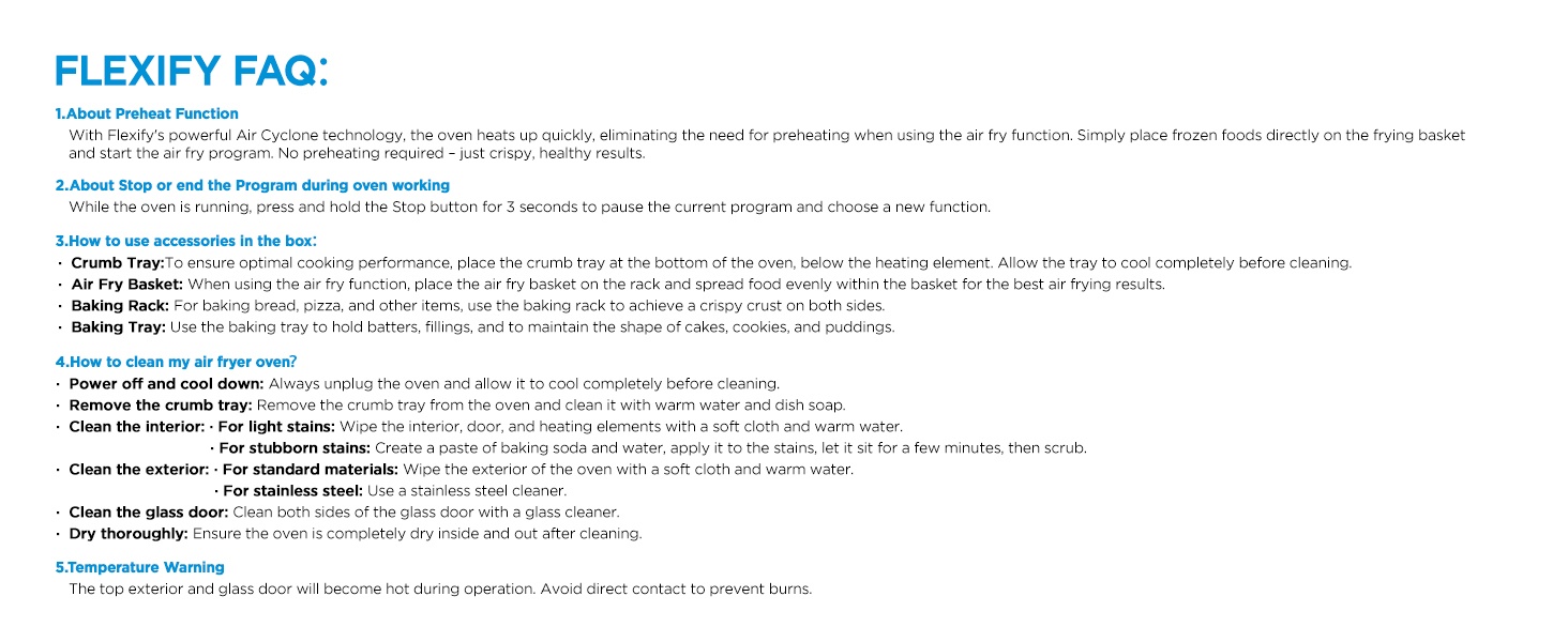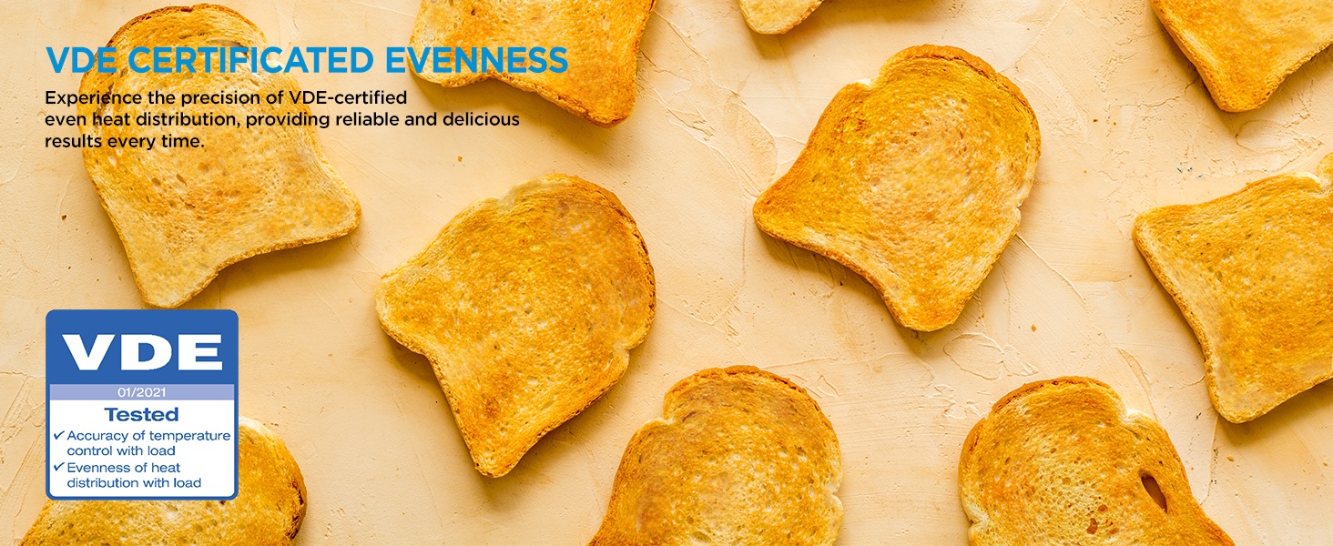 Friteuse à air cyclonique : Profitez d’une cuisson 25 % plus rapide et d’une consommation d’huile réduite de 90 % par rapport aux friteuses traditionnelles. Ce combo tout-en-un bénéficie d’une répartition uniforme de la chaleur certifiée VDE, doté d’un ventilateur de convection et de six éléments chauffants. Il chauffe rapidement et n’a pas besoin de préchauffage lors de l’utilisation de la fonction friteuse à air.