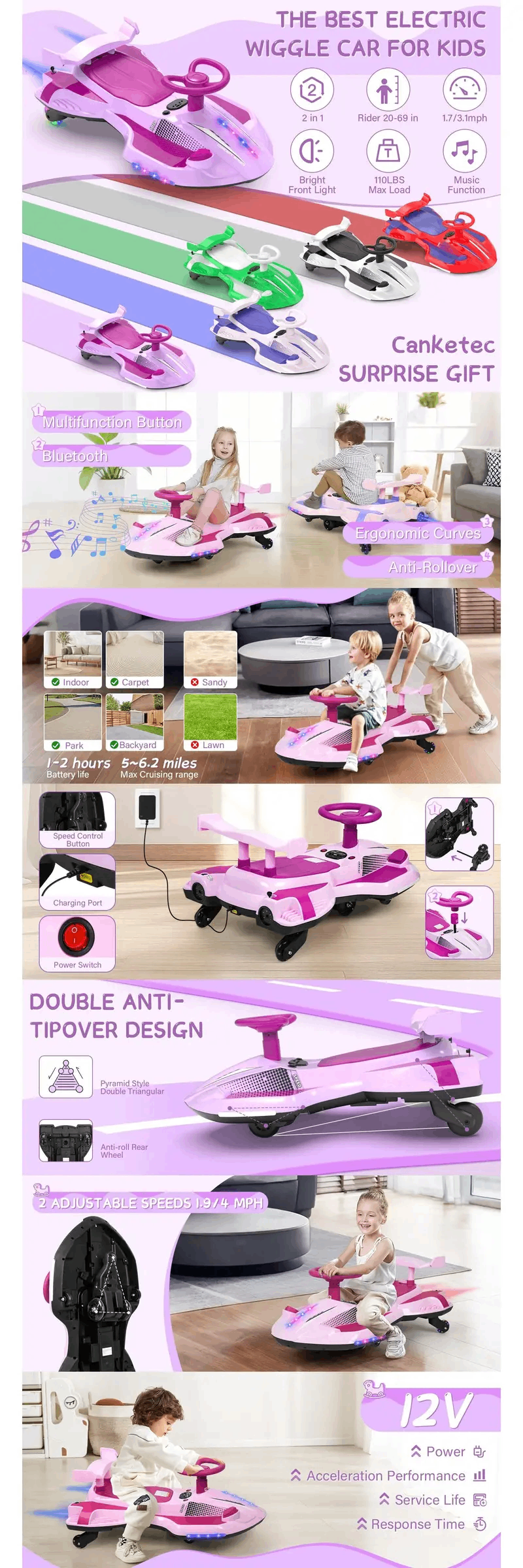 Avec une simple installation en deux étapes, la voiture à gigue motorisée est prête à l’emploi en un clin d’œil. Ce jouet de conduite polyvalent est un cadeau idéal pour les garçons et les filles dès 3 ans, le choix parfait pour les anniversaires, les fêtes ou toute célébration spéciale.