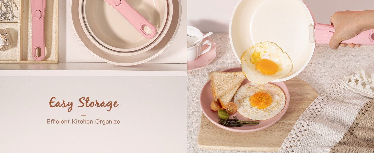【Rangement et nettoyage pratiques】La conception à poignée détachable économise un espace de rangement précieux et simplifie le nettoyage. Retirez facilement la poignée pour un lavage rapide et en profondeur, et gardez vos ustensiles et votre cuisine impeccables.