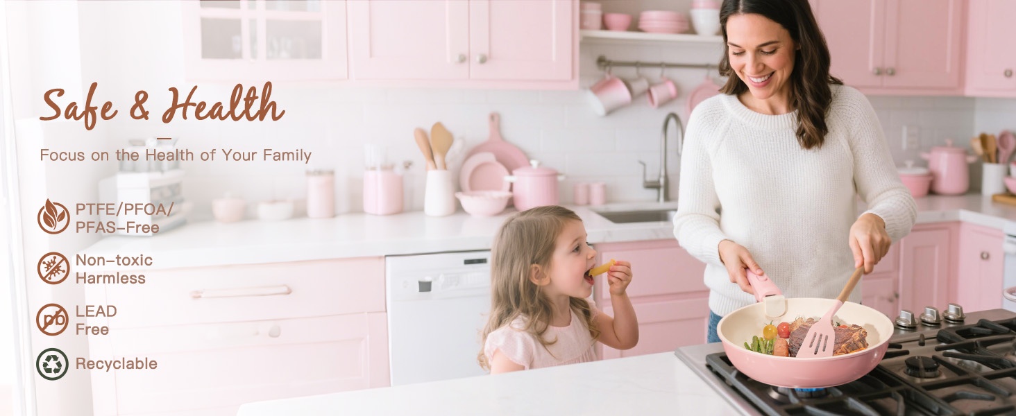 【Revêtement antiadhésif haute performance】Équipé d’un revêtement antiadhésif haut de gamme, nos ustensiles de cuisson offrent une durabilité et une performance exceptionnelles. Faciles à nettoyer et exempts de produits chimiques nocifs comme le PFOA, ils garantissent une expérience de cuisson plus saine.