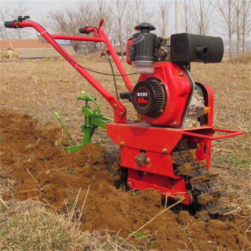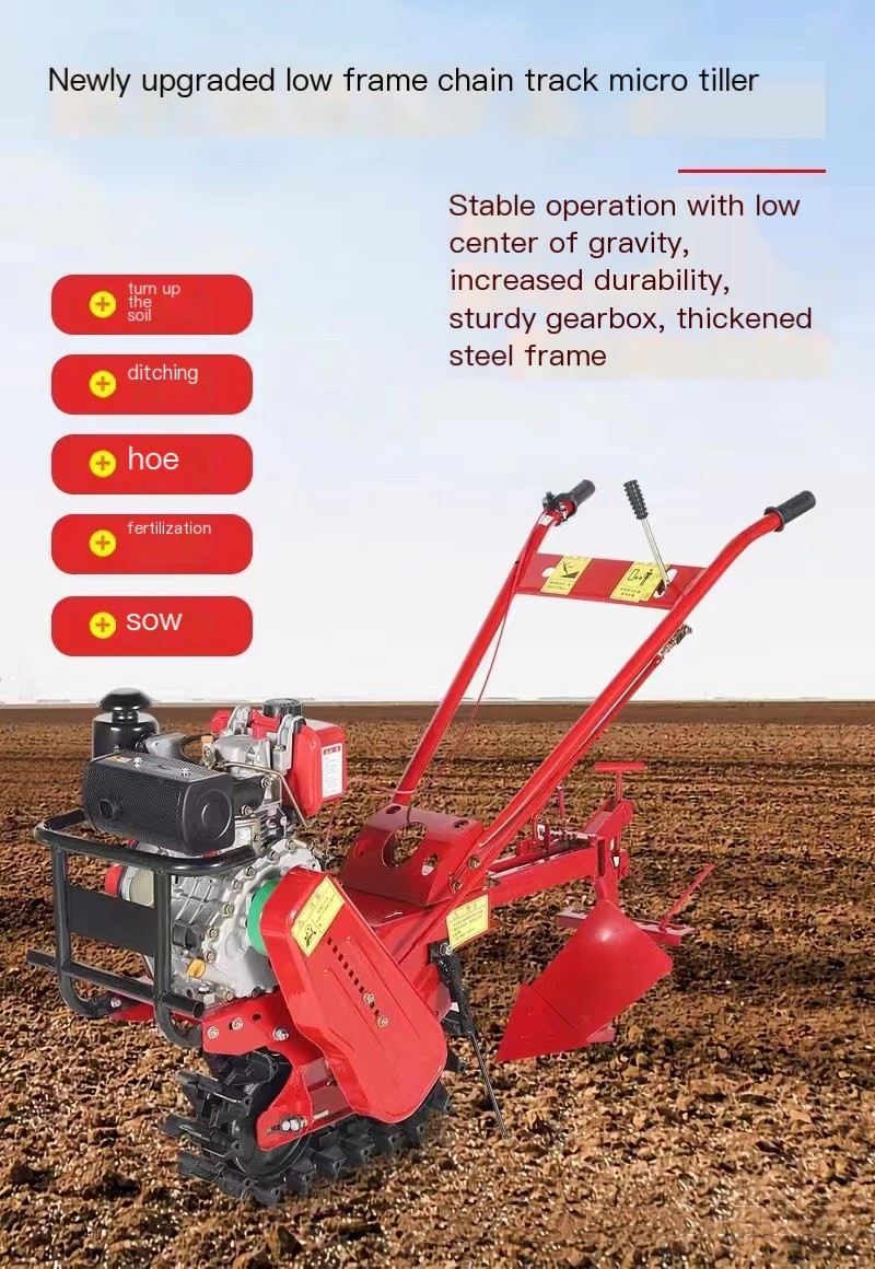 Mini motoculteur sur chenilles à guidage manuel - Désherbage & préparation de la ferme, tout-en-un