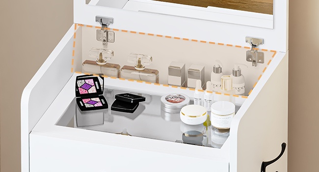 Espace de rangement caché de 20,3 cm de profondeurUn compartiment de rangement supplémentaire pour vos grands flacons de soins de la peau (tonique, essence, lotion, spray fixateur)