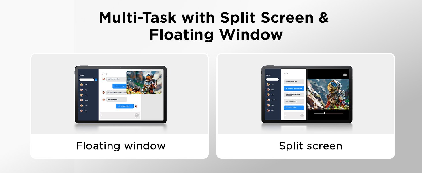 Performance puissante pour la multitâche et la productivité multi-fenêtres : Pilotée par le processeur MediaTek Helio G99 et fonctionnant sous Android 14, cette tablette TCL associe 256 Go de stockage à 8 Go de RAM, plus 8 Go de mémoire extensible supplémentaires, gérant sans effort les applications d’étude, de travail et créatives. L’interface intelligente UI de TCL booste la productivité en prenant en charge le miroir d’écran, les écrans étendus, les fenêtres flottantes et le découpage d’écran.