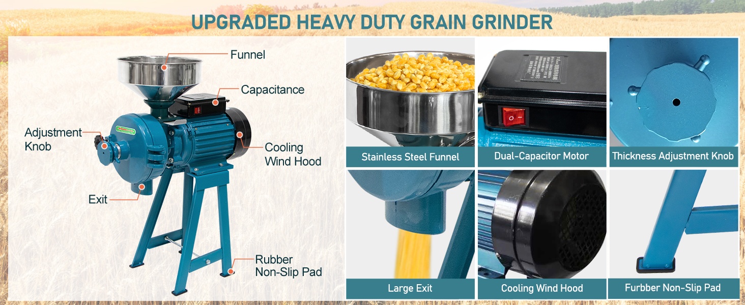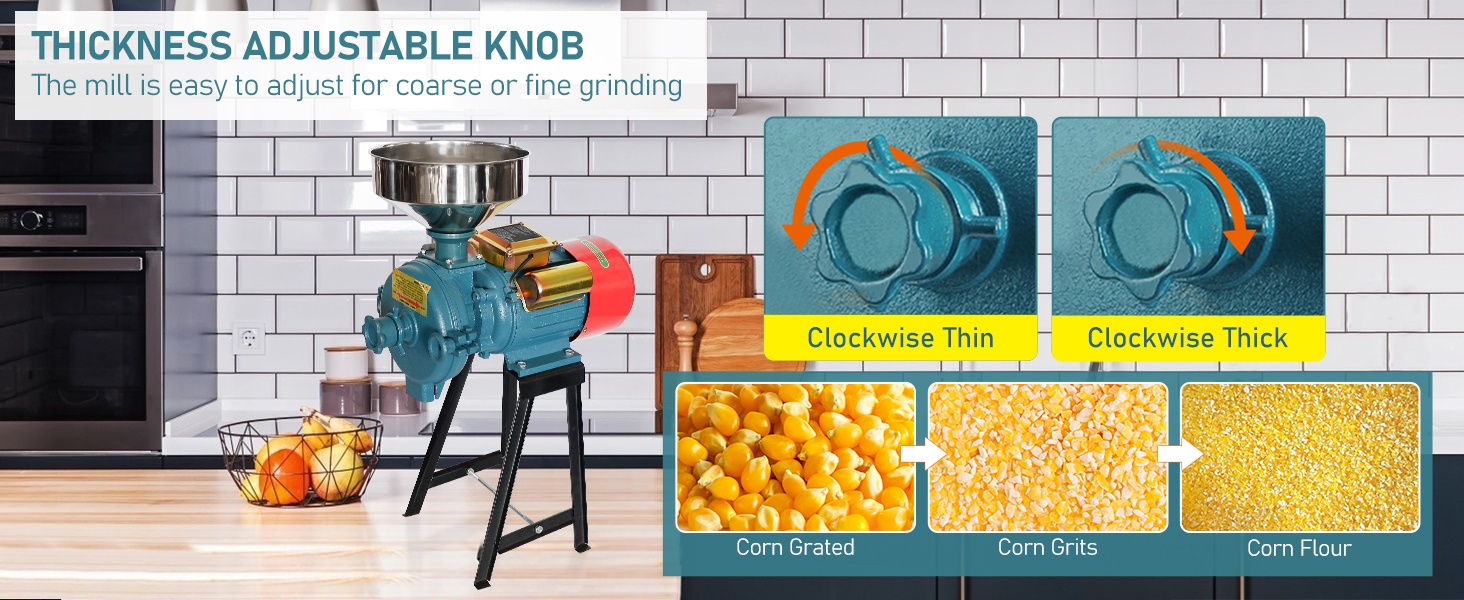 Ce moulin à grains robuste est équipé d’un puissant moteur de 3000W et d’un fonctionnement à haute vitesse (jusqu’à 2800 tr/min), idéal pour un usage commercial ou domestique. Transformez facilement du maïs, du riz, du blé et bien plus encore en poudre ultra-fine en quelques minutes seulement.